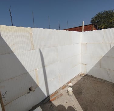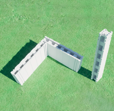 Peças pré-fabricadas que se encaixam com precisão, facilitando a montagem.